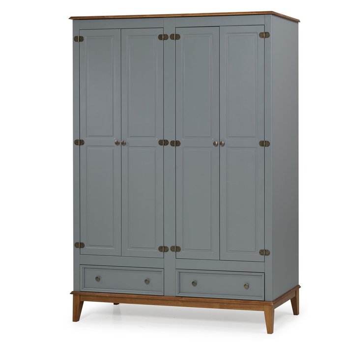 Guarda-roupa Rústico 4 Portas e 2 Gavetas - Madeira Maciça e Mdf - Cinza