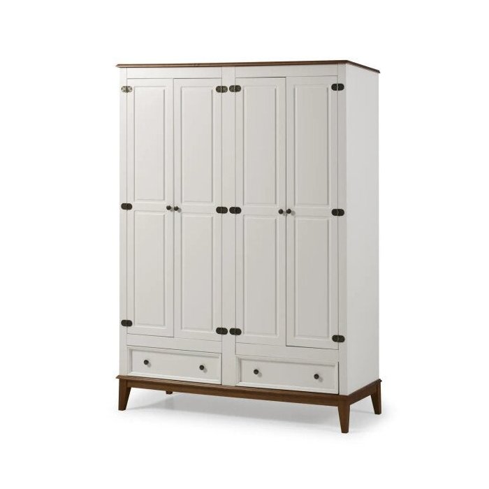 Guarda-Roupa Rústico Colonial Madeira Maciça Branco - 4 Portas 2 Gavetas