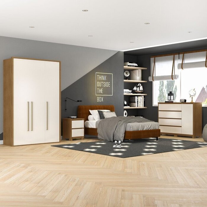 Guarda-roupa Sevilha 3 Portas Cômoda 4 Gavetas 1 Porta Mesa de Cabeceira 2 Gavetas Freijó/Off White
