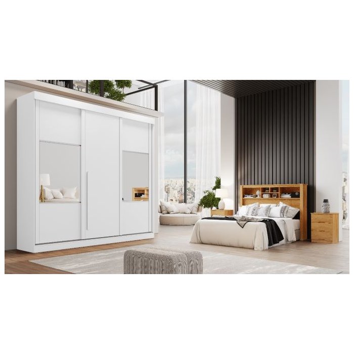 GUARDA-ROUPA SINTRA 3PTS CORRER 2 ESPELHOS 3 GVT - BRANCO PEROBA BRANCO