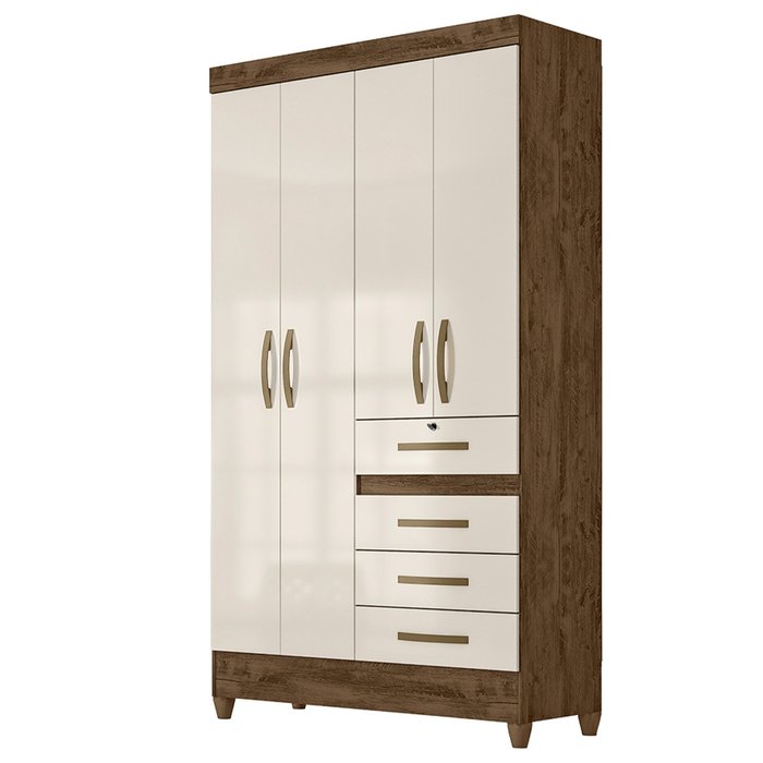 Guarda Roupa Sobral 110cm 4 Portas Castanho Wood Off White Moval