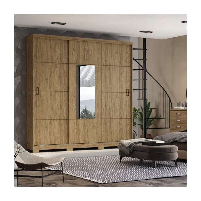 Guarda-Roupa Solteiro 1 Espelho 3 Portas de Correr Silver Henn Rústico