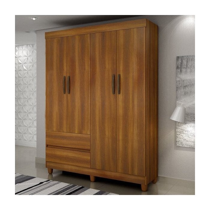 Guarda-Roupa Solteiro 110cm 4 Portas 2 Gavetas Porto Sallêto Móveis Nogal