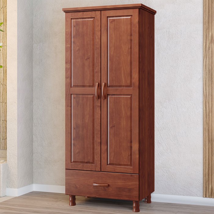 Guarda Roupa Solteiro 2 Portas 1 Gaveta em Madeira Linha Bronze - Imbuia