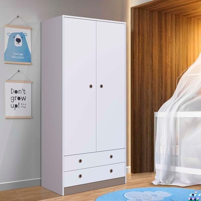 Guarda Roupa Solteiro 2 Portas 2 Gavetas Branco Conway Shop Jm