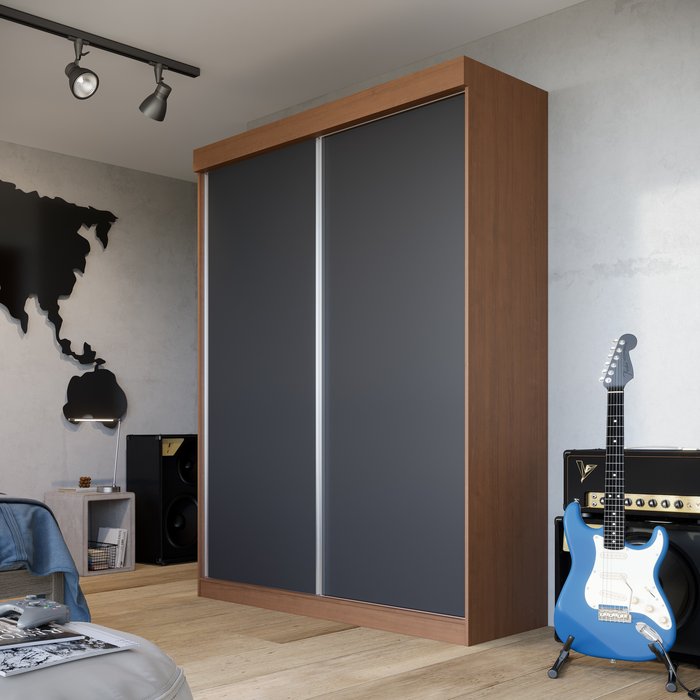 Guarda Roupa Solteiro 2 Portas 2 Gavetas Peônia Yescasa Freijó/Grafite