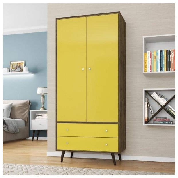 Guarda-Roupa Solteiro 2 Portas 2 Gavetas Retrô Milão Móveis Bechara Madeira Rústica/Amarelo