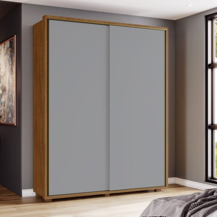 Guarda Roupa Solteiro 2 Portas 3 Gavetas Hilton Henn Nature/Cinza