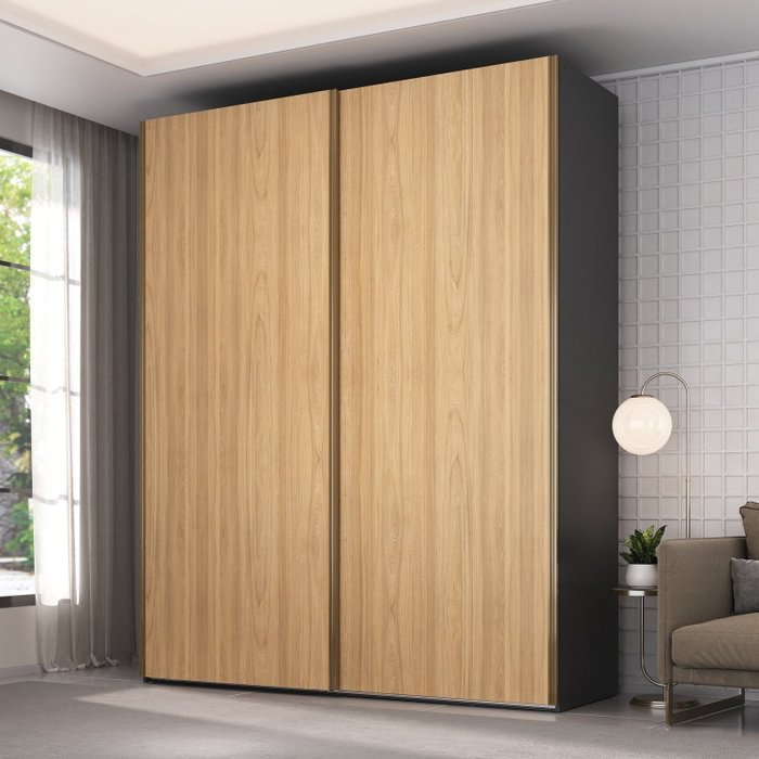 Guarda Roupa Solteiro 2 Portas 3 Gavetas Veneto Preto/Olmo Italiano