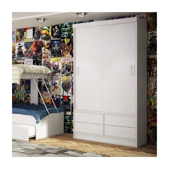 Guarda-Roupa Solteiro 2 Portas 4 Gavetas 1450 Branco