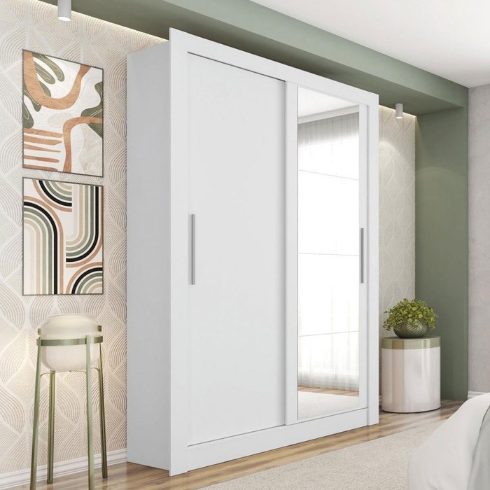 Guarda-roupa Solteiro 2 Portas 4 Gavetas com Espelho Branco - Caemmun