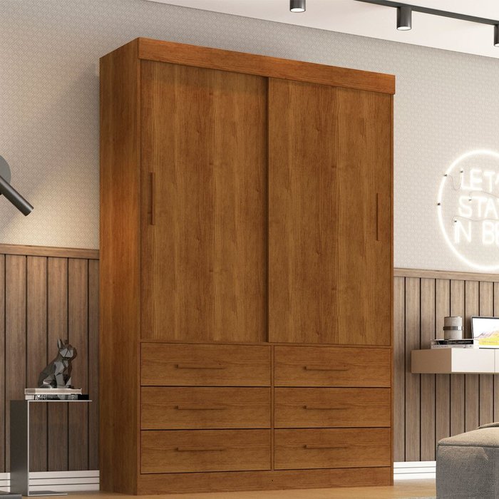 Guarda Roupa Solteiro 2 Portas 6 Gavetas Star Sallêto Cinamomo