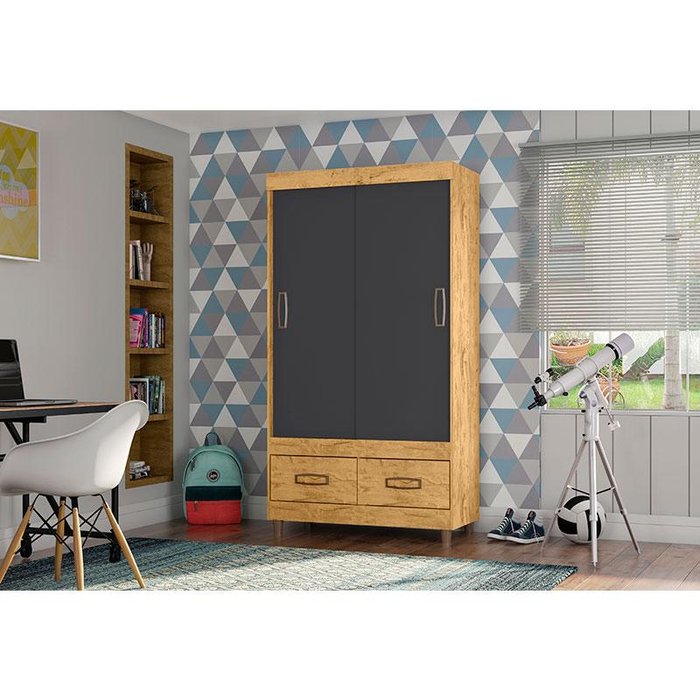 Guarda Roupa Solteiro 2 Portas Ambiente 20022 Freijó Carbono Flex – Araplac
