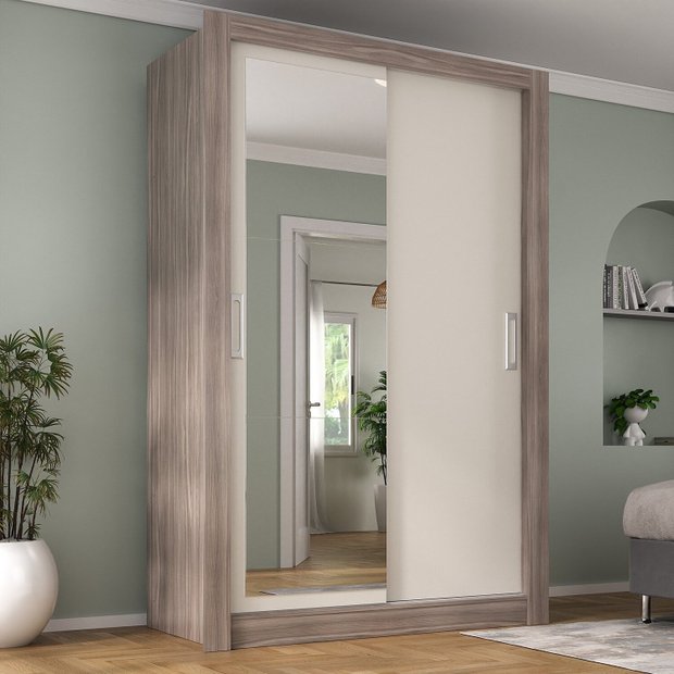 Guarda Roupa Solteiro 2 Portas - com Espelho Liz Yescasa Castanho/Off White