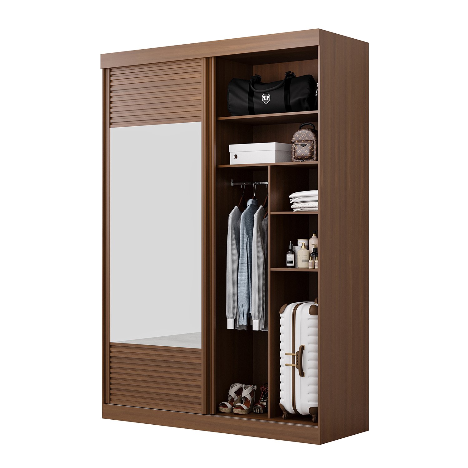 Guarda-Roupa Solteiro 2 Portas com Espelho Samambaia CabeCasa MadeiraOriginals Freijó