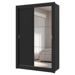 Guarda-roupa Solteiro 2 Portas de Correr com Espelho 4 Gavetas Preto Vivare Plus Madesa