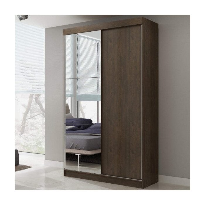 Guarda-Roupa Solteiro 2 Portas de Correr com Espelho Medellín Mapi Móveis Rústico