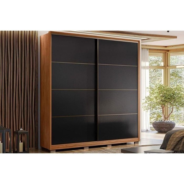 Guarda Roupa Solteiro 2 Portas De Correr E 3 Gavetas C/ Pés Belga Nogueira/nogueira Ou Preto - Demóbile