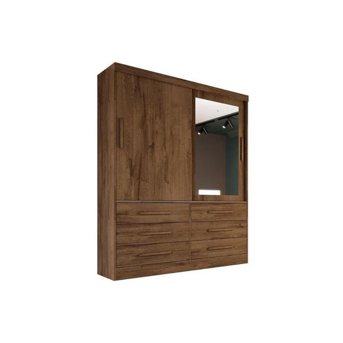 Guarda Roupa Solteiro 2 Portas de Correr e 6 Gavetas C- Espelho Turin Avelã