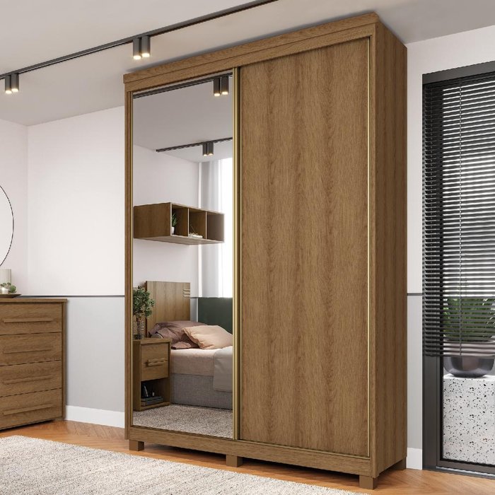 Guarda Roupa Solteiro 2 Portas de Correr Espelho Rimo New Honduras - Jequitibá