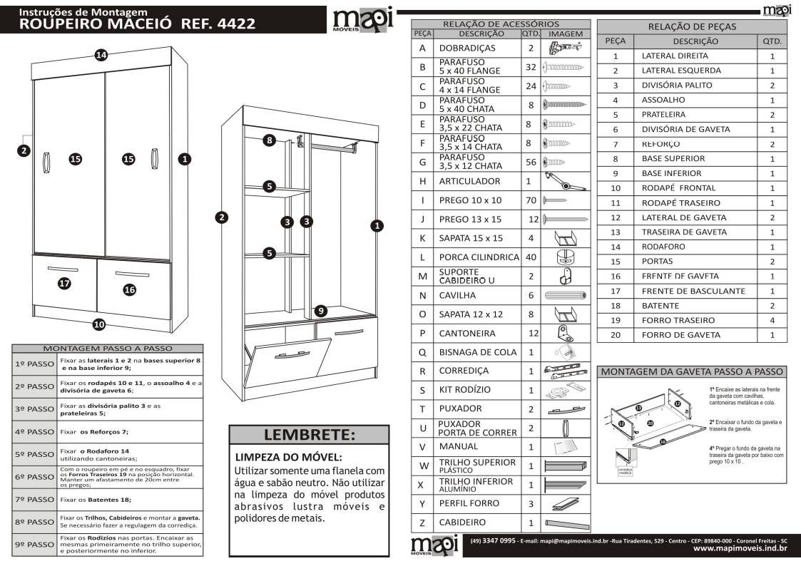 | Itens Inclusos | Guarda Roupa e Manual de Montagem. |