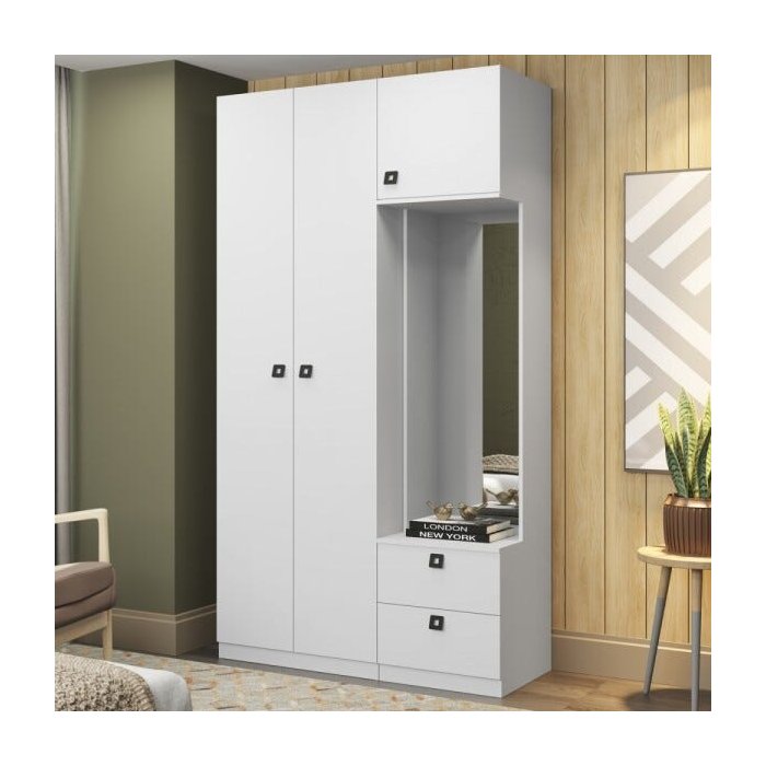 Guarda-Roupa Solteiro 3 Portas 2 Gavetas com Espelho Branco Tx - Móveis Bentec