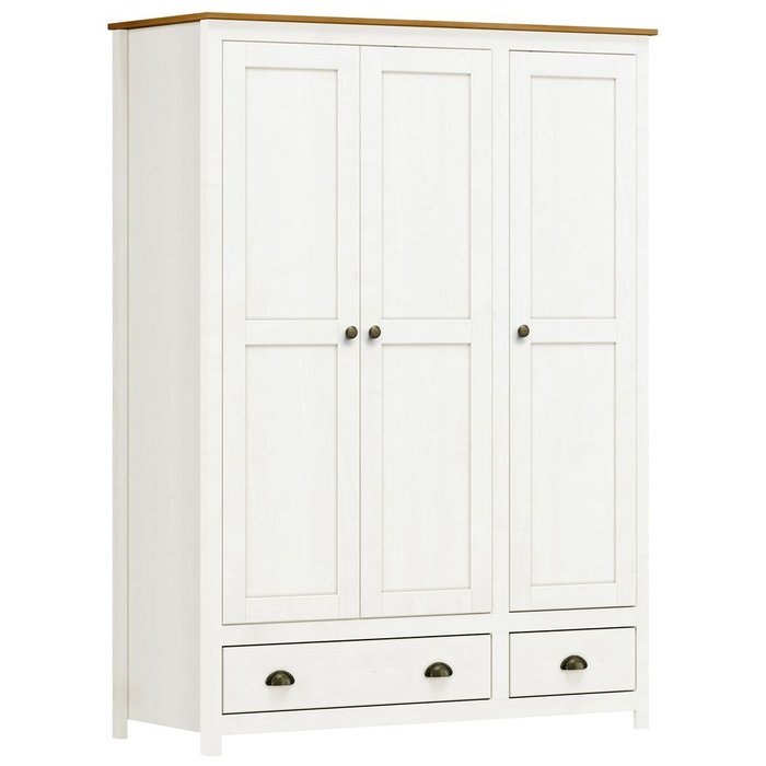 Guarda Roupa Solteiro 3 Portas 2 Gavetas Madeira Maciça Mazzaro F06 Branco Freijó - Lyam Decor