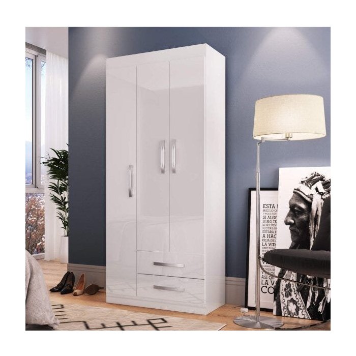 Guarda-Roupa Solteiro 3 Portas 2 Gavetas Turim Espresso Móveis Branco