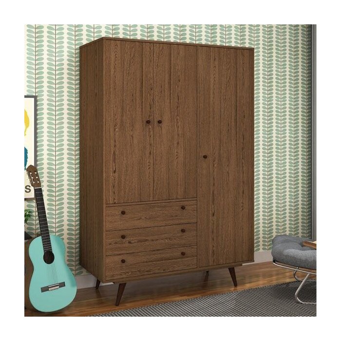 Guarda-Roupa Solteiro 3 Portas 3 Gavetas Retrô 20 Olivar Rustic Carvalho