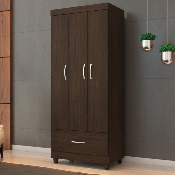 Geralmente, este tipo de guarda-roupa apresenta 2 ou 3 portas e tem menos divisões no espaço interno.