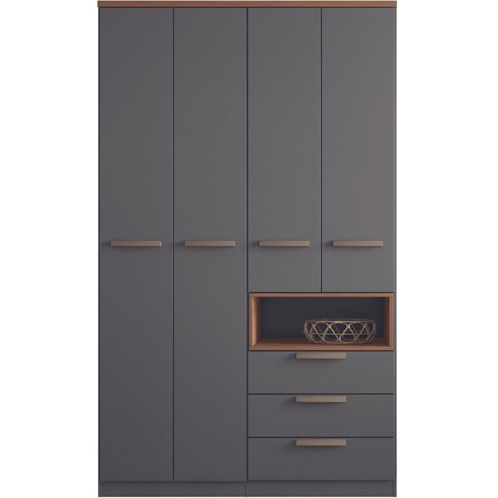 Guarda Roupa Solteiro 4 Porta com Nicho New Conect Grafite/Jatobá