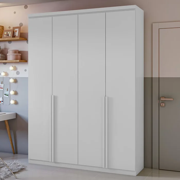 Guarda-Roupa Solteiro 4 Portas 2 Gavetas Alonzo Branco