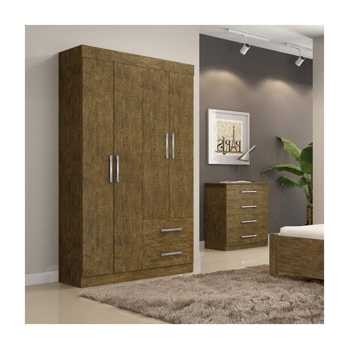 Guarda-Roupa Solteiro 4 Portas 2 Gavetas Recife Leifer Ypê