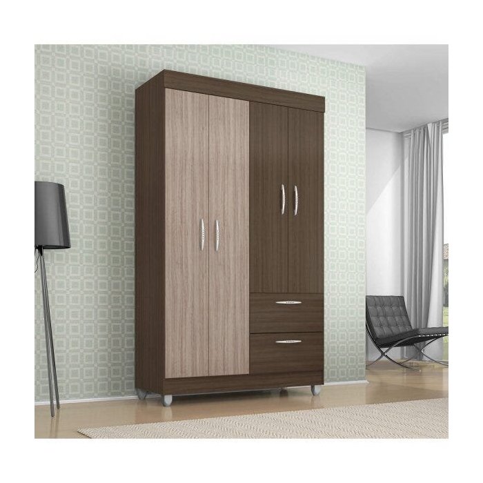 Guarda-Roupa Solteiro 4 Portas 2 Gavetas Tóquio Poquema Móveis Capuccino/Amêndoa