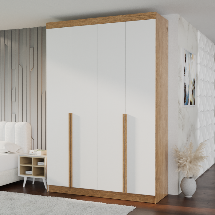 Guarda-roupa Solteiro 4 Portas 3 Gavetas 100% Mdf Marrocos Inovata/Branco Supremo/Cinamomo Mel