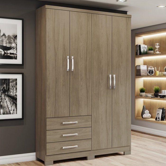 Guarda Roupa Solteiro 4 Portas 3 Gavetas City Henn Rústico