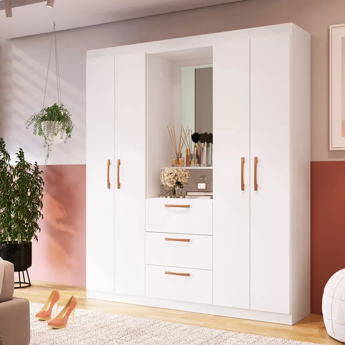 Guarda Roupa Solteiro 4 Portas 3 Gavetas Panamá Móveis Doripel Branco