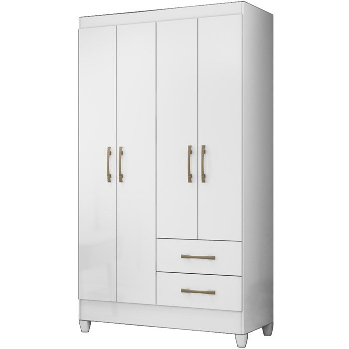 Guarda Roupa Solteiro 4 Portas, ideal para dar um toque de sofisticação ao ambiente. Estrutura em MDP de 12 e 15 mm que proporcionam melhor acabamento nas bordas e superfícies, e pintura com acabamento em UV. Composto por 4 portas articuladas, 2 gavetas, puxadores na cor bronze e acompanham pés em PVC. Excelente para seu quarto ficar belíssimo e organizado. Este móvel chegará na sua casa separado em 02 volumes.