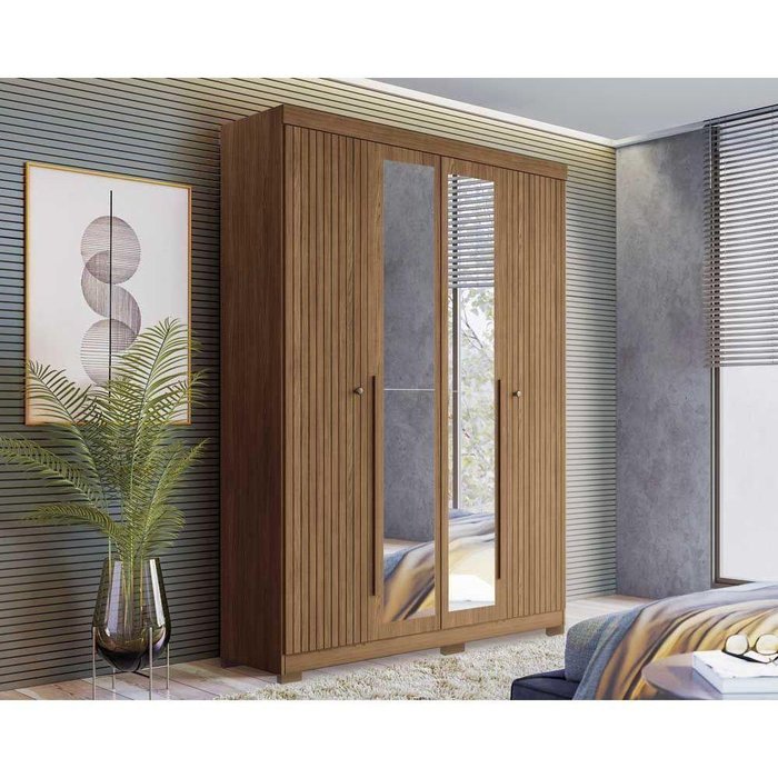 Guarda Roupa Solteiro 4 Portas E 2 Gavetas C/ Espelho E Pés Buriti Jatoba - Santos Andirá