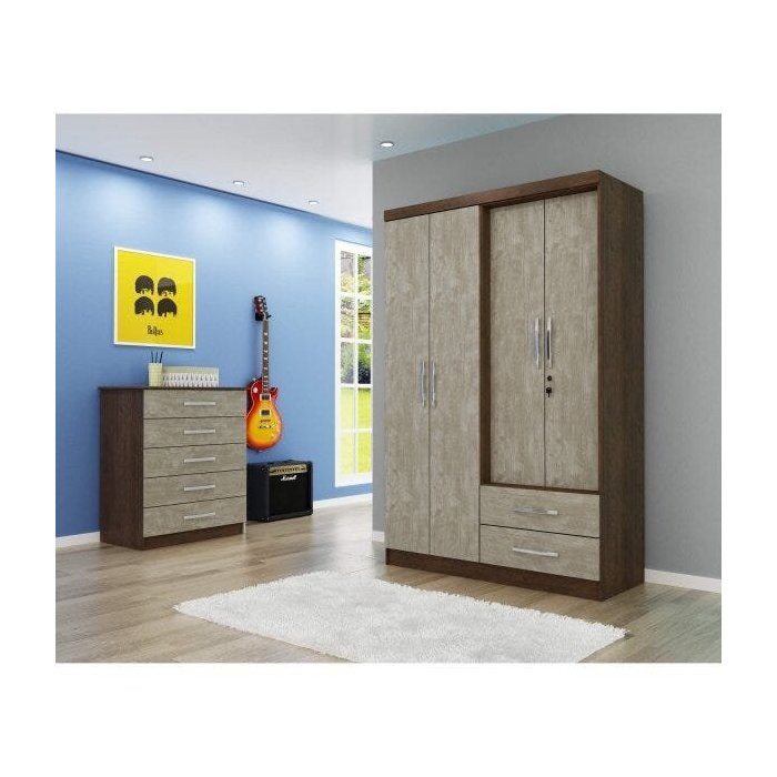 Guarda-Roupa Solteiro 4 Portas Recife Mapi Móveis Rústico/Carvalho