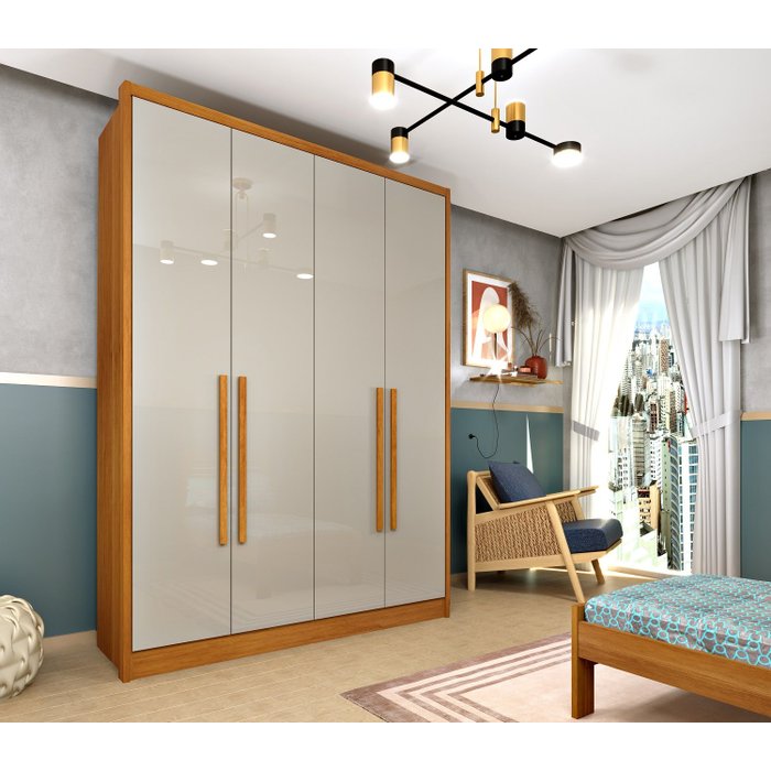 Guarda Roupa Solteiro 4 Portas Zelandia 165cm Espresso Móveis Cinamomo/Off White