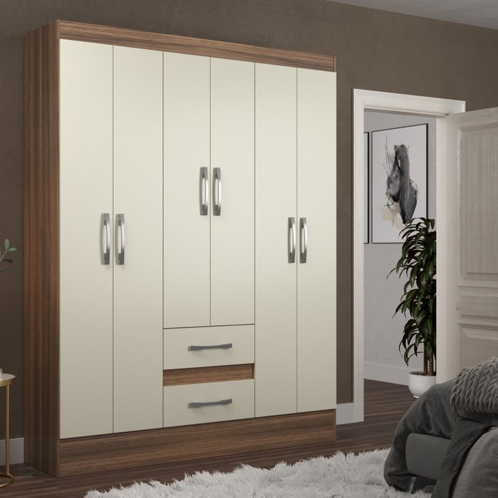 O Guarda-Roupa 6 Portas e 2 gavetas é prático, ideal para obter o melhor aproveitamento e espaço do seu ambiente. O compacto dos 6 portas possui corrediça plástica e dobradiças de metal, puxador plástico e cabideiro para melhor organização. Com suas repartições bem estruturadas, ele proporciona maior pratricidade e espaço para a sua organização.