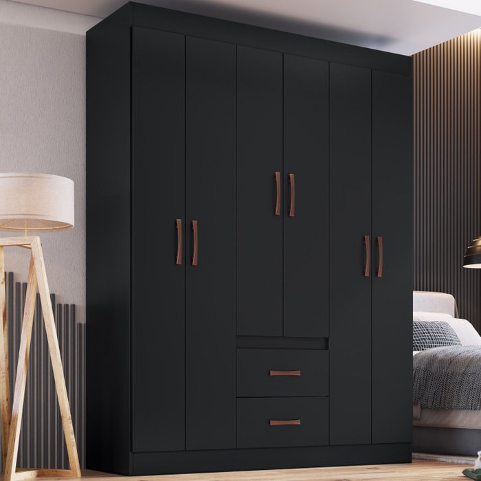 Guarda Roupa Solteiro 6 Portas 2 Gavetas Montevideu Preto