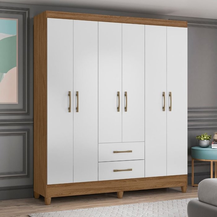 Guarda Roupa Solteiro 6 Portas 2 Gavetas Moval Panamá Naturale/Branco Naturale/Branco