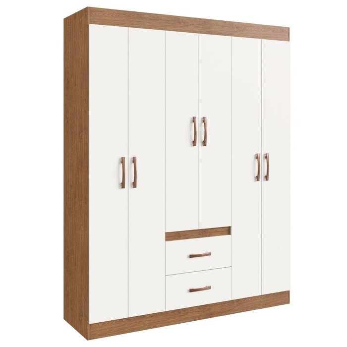 Guarda Roupa Solteiro 6 Portas 2 Gavetas Sidney Doripel Off White Nogueira