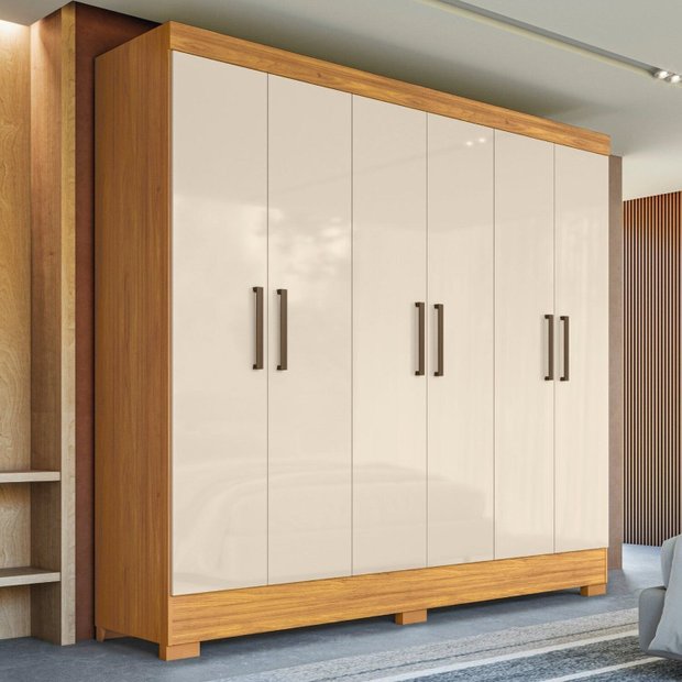 Guarda-roupa Solteiro 6 Portas 2 Gavetas Verso Cinamon/Off White