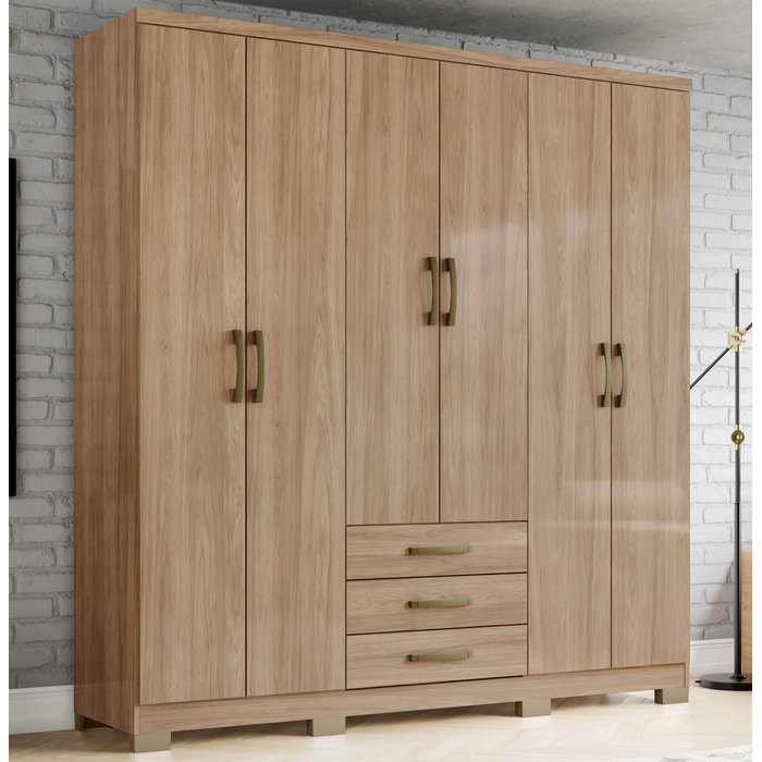 Guarda Roupa Solteiro 6 Portas 3 Gavetas Caju