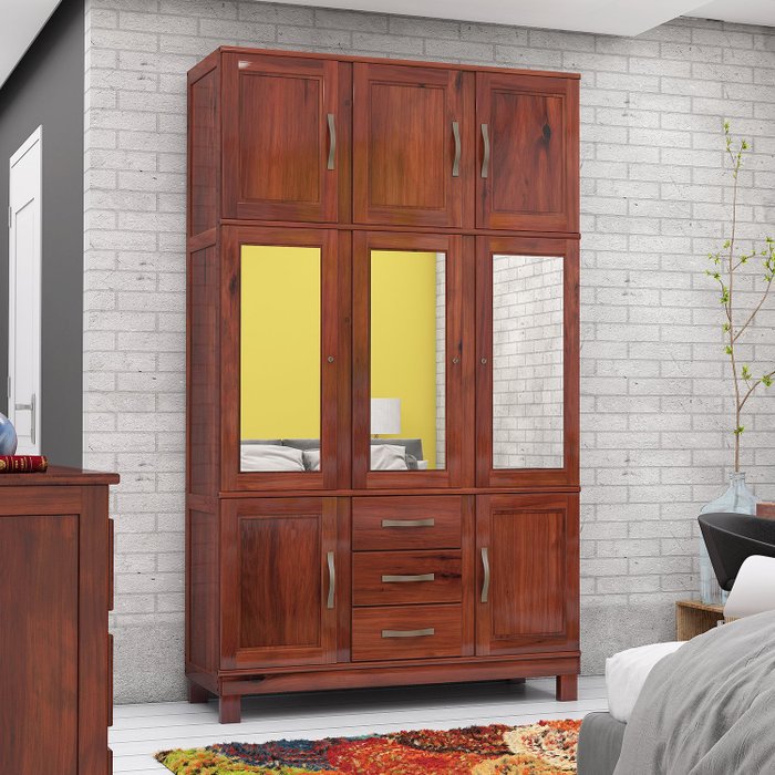 Guarda Roupa Solteiro 8 Portas 3 Espelhos 3 Gavetas e Pés Paris Mogano