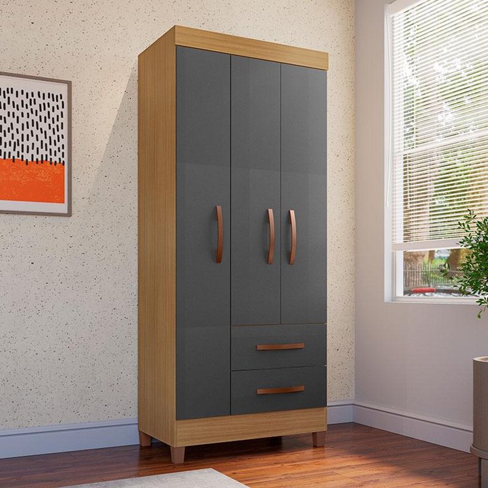 Guarda Roupa Solteiro Ambiente Prime 3 Portas Carvalho Americano Grafite Eco - Incorplac
