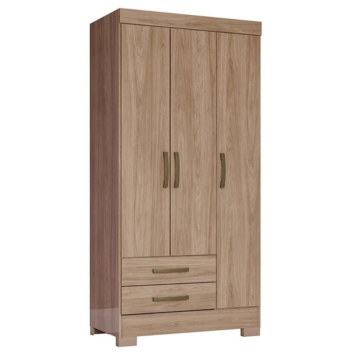 Guarda Roupa Solteiro Be16 com 3 Portas e 2 Gavetas Jequitibá Brilho - Móveis Briz